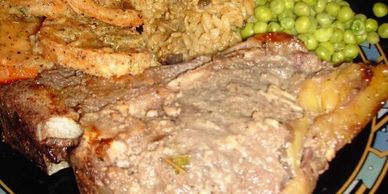 Combine: Red Wine, vinegar, lemon juice, garlic and salt. Poke a few holes into steak with fork, mix the meat tenderizer with a little water or red wine vinegar. Work that into the holes in the meat. Rub meat with the black pepper, embedding it into the surface of the meat. Marinate for 3-6hours. Place garlic on top of meat while cooking. Grill recommended, broil in winter months...makes 2-4 8oz steaks